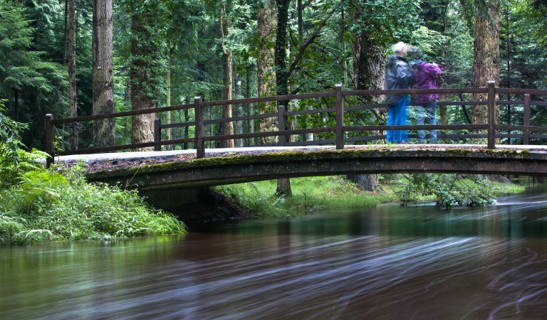 A pair of tourists marvel at the burst river.