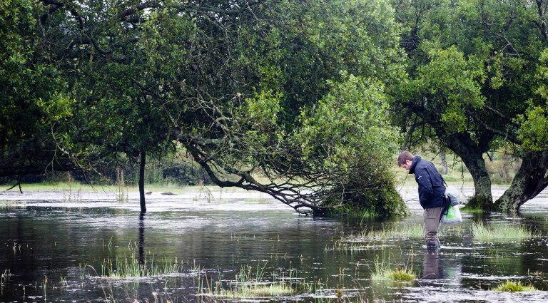 By this point we realise that the water becomes too deep even for wellies! We have to walk along instead of across.