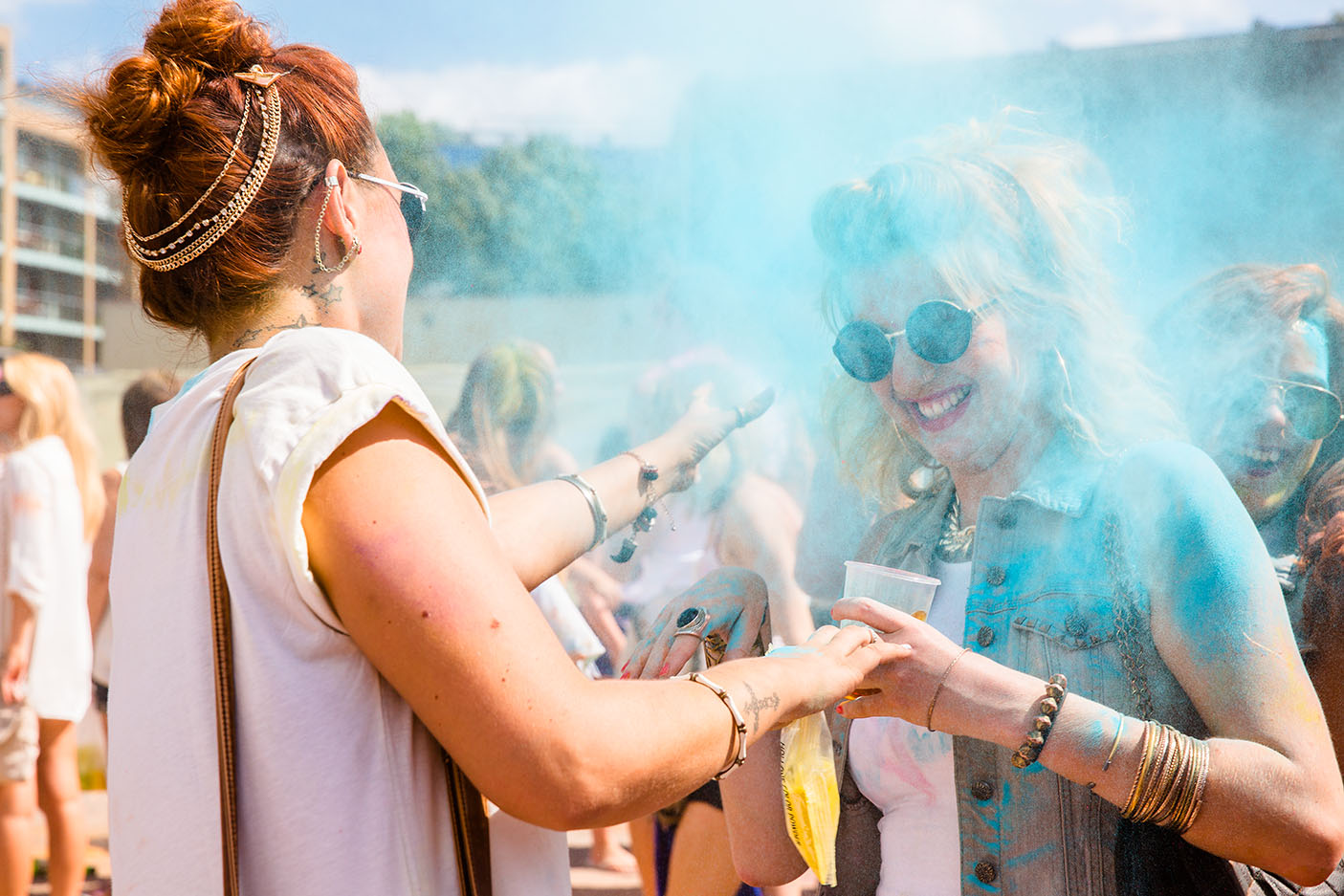 The event was inspired by the religious festival Holi, where Hindus gather together in February/March to celebrate the coming of spring and throw masses of coloured powder at each other. The festival at Battersea exported the idea of coloured powder, cast aside the relgious motivations, then added alcohol, a stage and DJs for good measure. The result? A great big messy party!