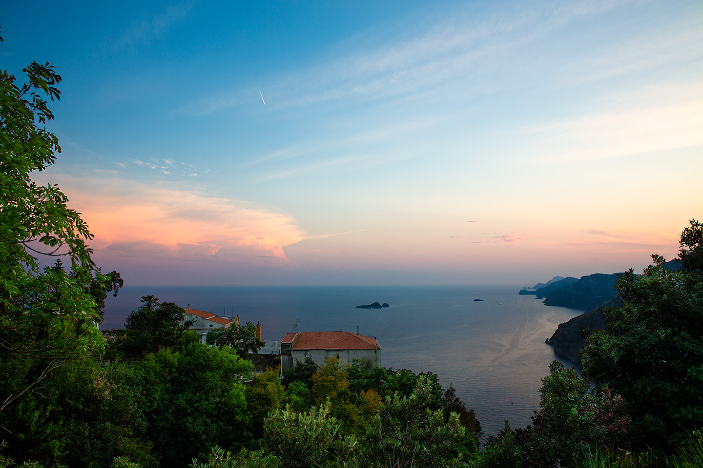 To pick up from my last post, close to the end of the walk you enter the village of Nocelle. This is where I stayed during my time on the Amalfi Coast, a very windy 30-minute bus ride from Positano – or 1600 steps. I’m in love with Nocelle. Despite the fact that hotels and B&Bs constitute, I would guess, about half of the buildings, it’s still quiet, beautiful and atmospheric. Along the tiny steep streets (almost nowhere is flat) are local children playing, elders chatting in the evening sun. And when you turn your back on the village to look out to sea you are greeted with the most gorgeous views.