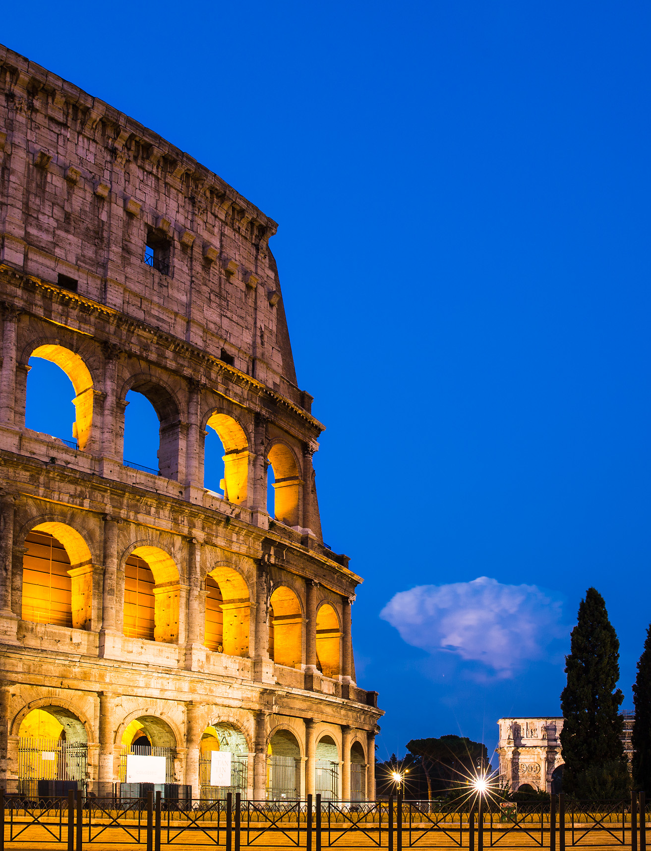 The Colosseum at pre-dawn. Having walked for almost 12 hours the day before, I really had to drag myself out of bed to get here, but it was completely worth it. Once again the light from the sky was perfectly balanced with the lights and it was empty!