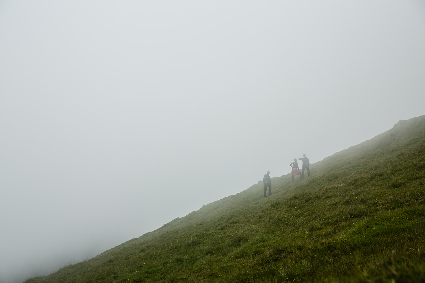 Sat on the steep grass I could see only several meters ahead of me. One month before I had been in the exact same situation in almost the exact same place. One month before I had turned back, and made my way down the mountain side, defeated and a little shaken. The wind had been fierce and it turned the rain into little spikes that hit my face unrelentingly. And perhaps worst of all was how it had been pushing me towards the edge, which sported at least a 200m drop to the ocean just several meters beyond me. It had proved too much for me that time.