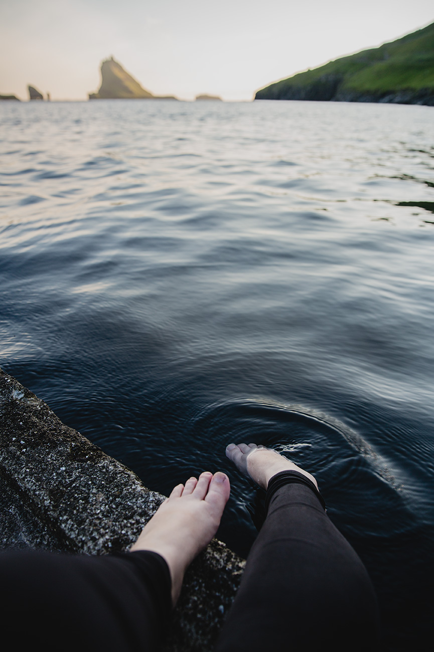 I got off near Bøur. I dipped my toes in that familiar cold dark water and watched the sun sink behind the mountains. Pure bliss. I thought of all the places in the world, including those that were considerably hotter, sunnier and drier, and knew that there was nowhere else I would have rather been.