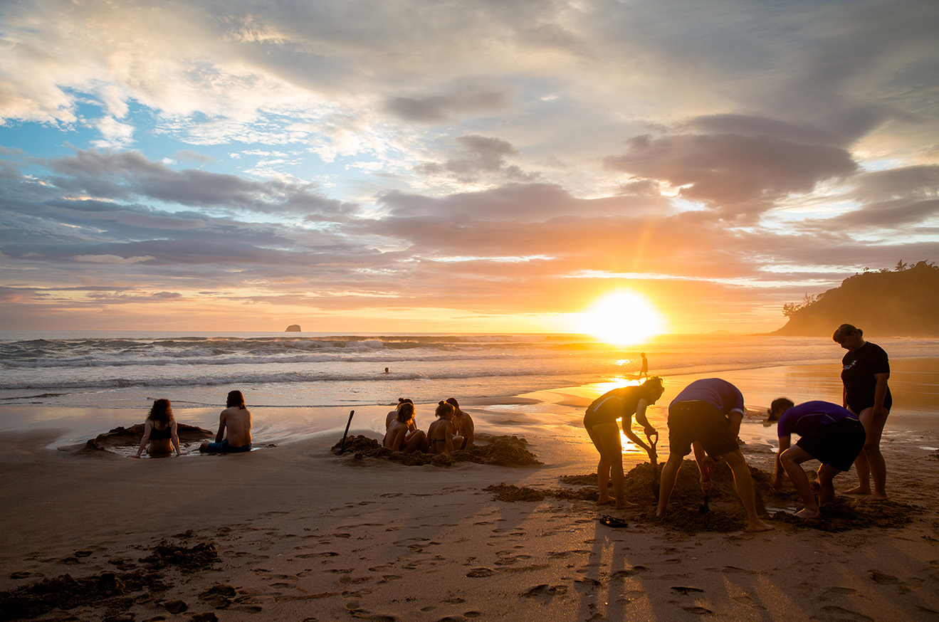 I was at Hot Water Beach, a beautiful place on New Zealand’s Coromandel Peninsula known for its pristine coastlines. This beach was particularly special as during low tide a hot spring is revealed in the sand. Visitors flock to the small area to dig their own hot pools and relax in the great outdoors. This morning low tide coincided with dawn, and the scene in front of me was absolutely magical. With its combination of stunning scenery and buzz of unusual activity, I knew it was a winner. The battle had been won (just), and it felt amazing.